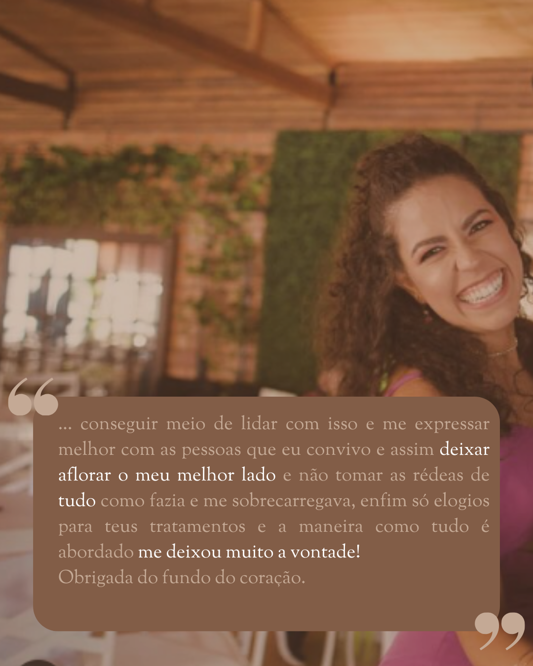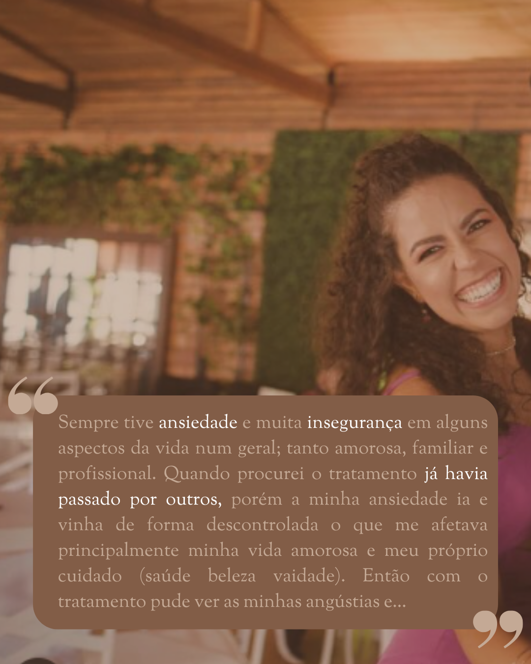 Humanoterapeuta trata as chamadas “dores na alma”, como... depressão, síndrome do pânico, angústia, ansiedade autossabotagem e processos obsessivos.